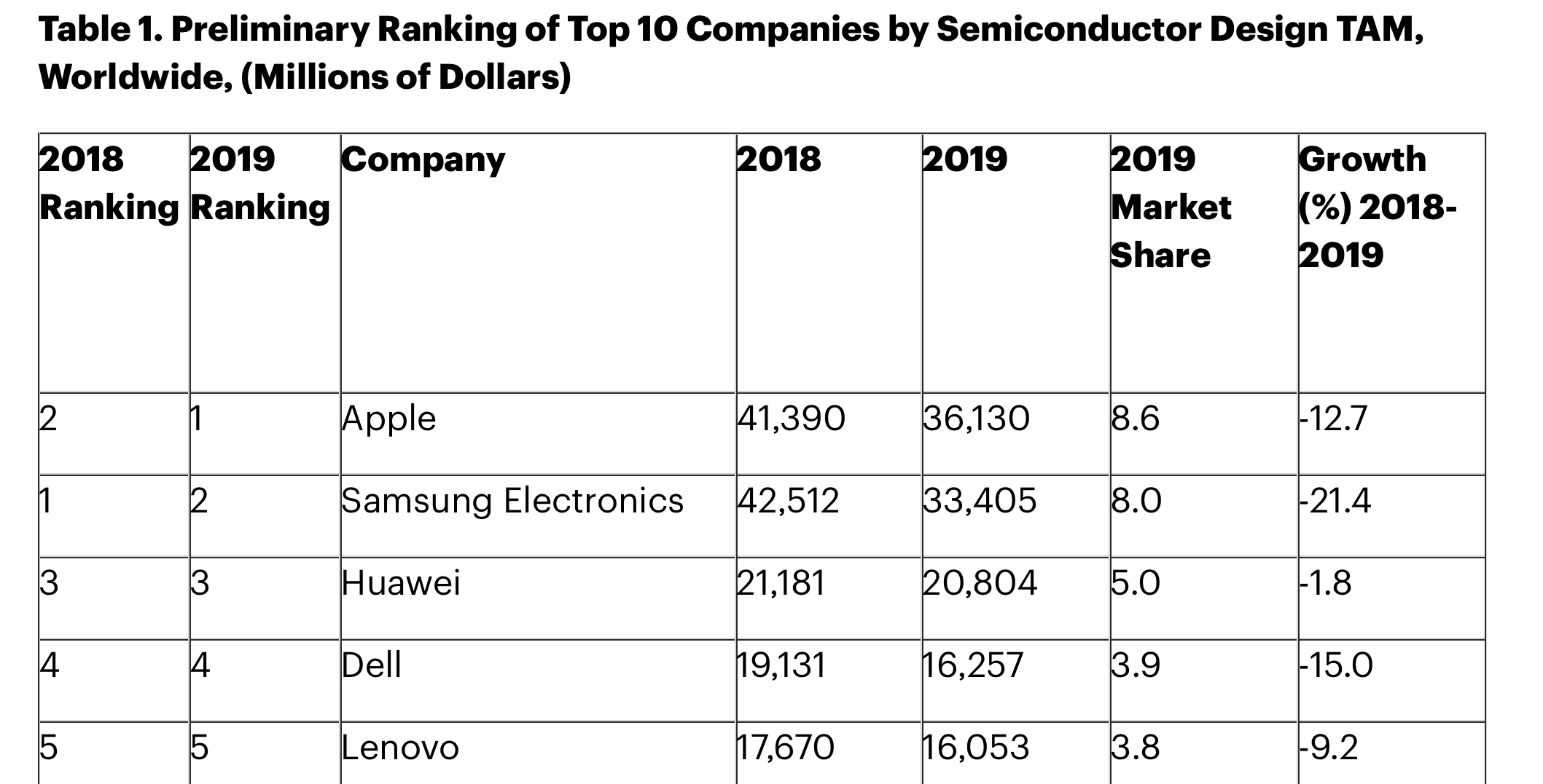 “The members of the top five did not change in 2019, but all of them decreased chip spending through 2019,” said Masatsune Yamaji, senior principal analyst at Gartner.