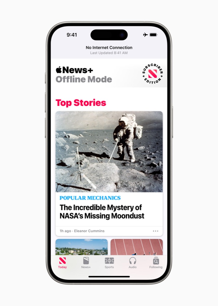 Available with iOS/iPad OS 17.5 or later, Offline Mode is available only to News+ subscribers and only on iPhone and iPad. To enable it, follow these steps: