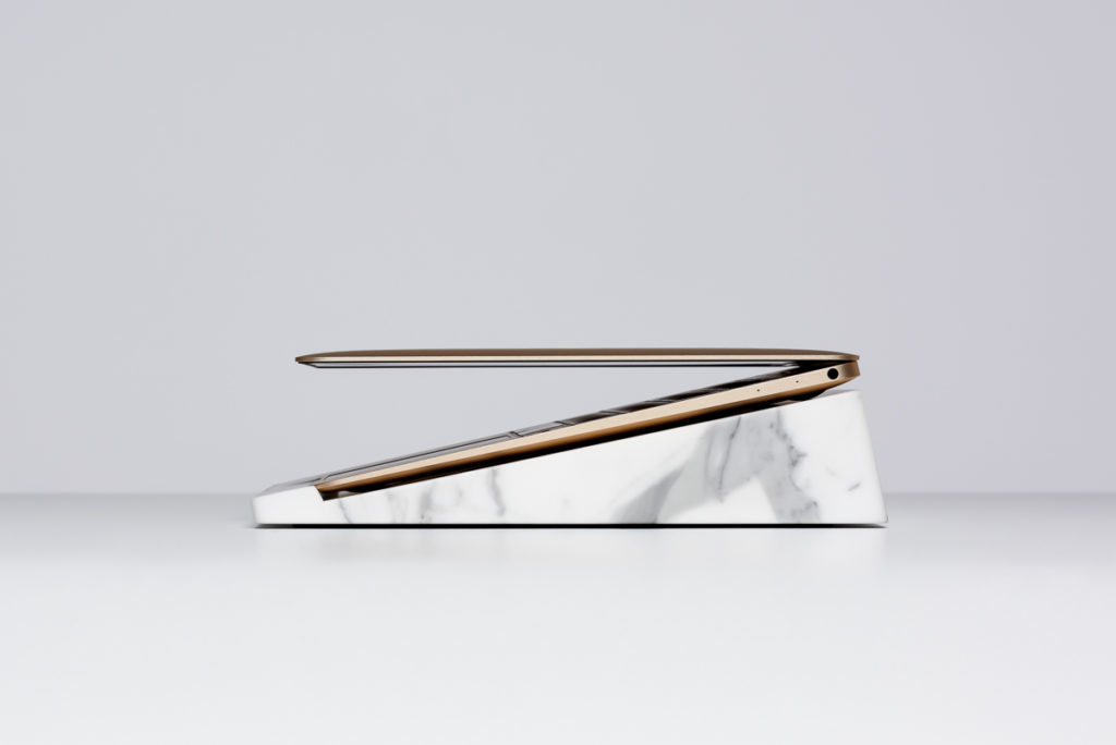 “BLOCK is a near-seamless extension of an Apple MacBook computer, raising an object of daily use onto a pedestal, marrying metal and stone into aesthetic harmony while matching the design quality and elegance of the computer it holds.”
