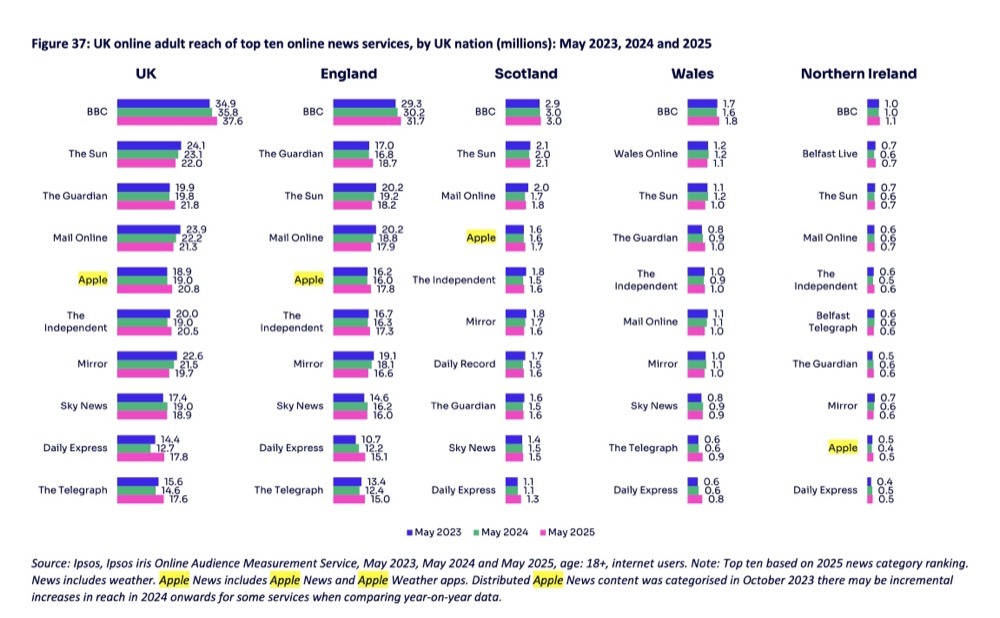 Apple News is a top five news service in UK