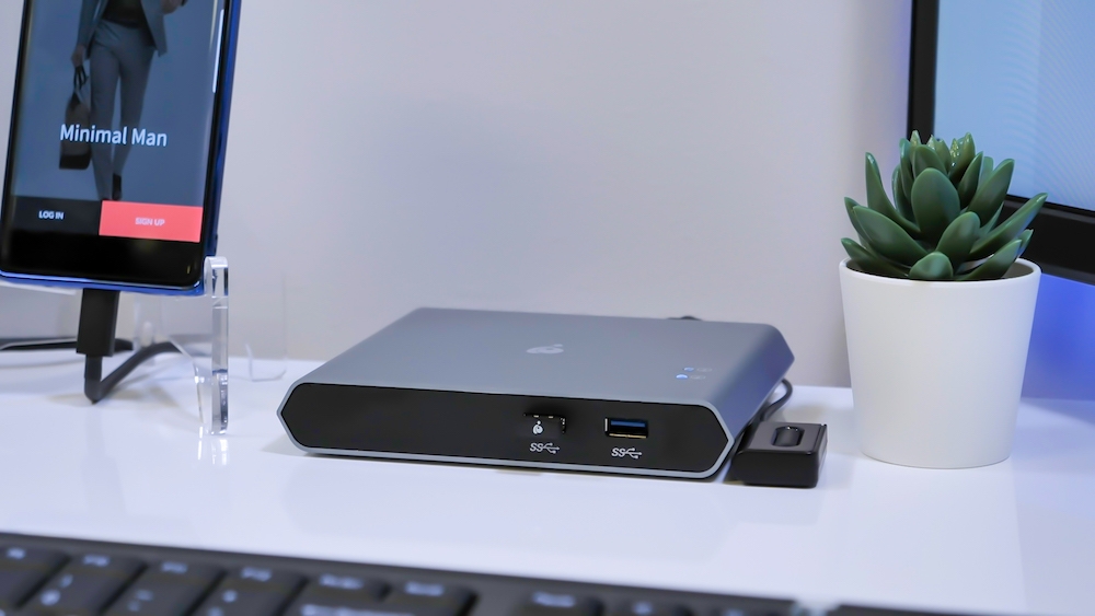 - 1x USB-C for laptop, 1x USB-C for smartphone; data rate up to 5 Gbps