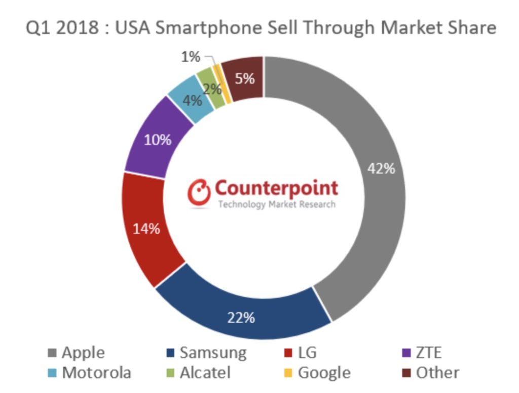 You see, it shows that U.S. smartphone sales declined 11 percent in Q1 2018, with 38.7 million sold in contrast to the year-ago quarter when 43.7 million sold. That’s the lowest sales for three years – and Apple completely bucked this trend. It saw a 16 percent increase in iPhone sales year-on-year, meaning the decline in sales is due entirely to softness across the Android market.